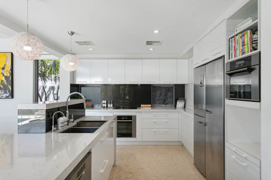 Kinderhochstuhl, Kaffeemaschine, Küchenausstattung, Geschirrspüler, Küchenherd, Mikrowelle, Backofen, Kühlschrank